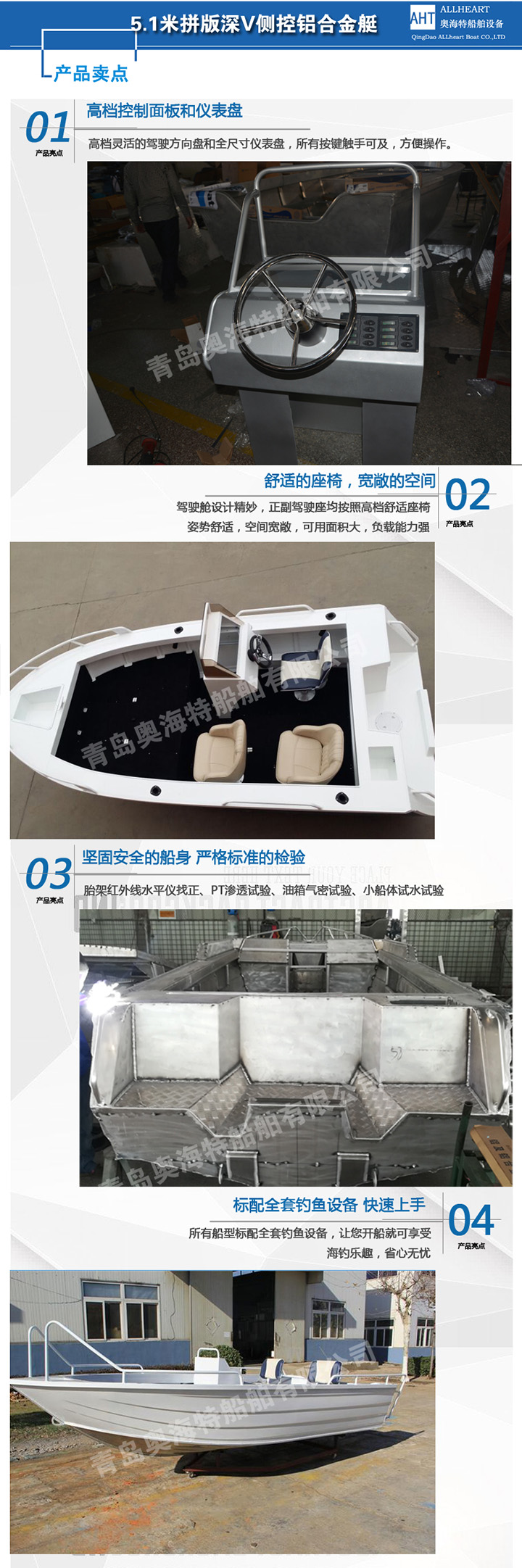 青岛奥海特船舶专业生产各类路亚艇铝合金公务艇铝合金执法艇喷射漂移艇等产品。